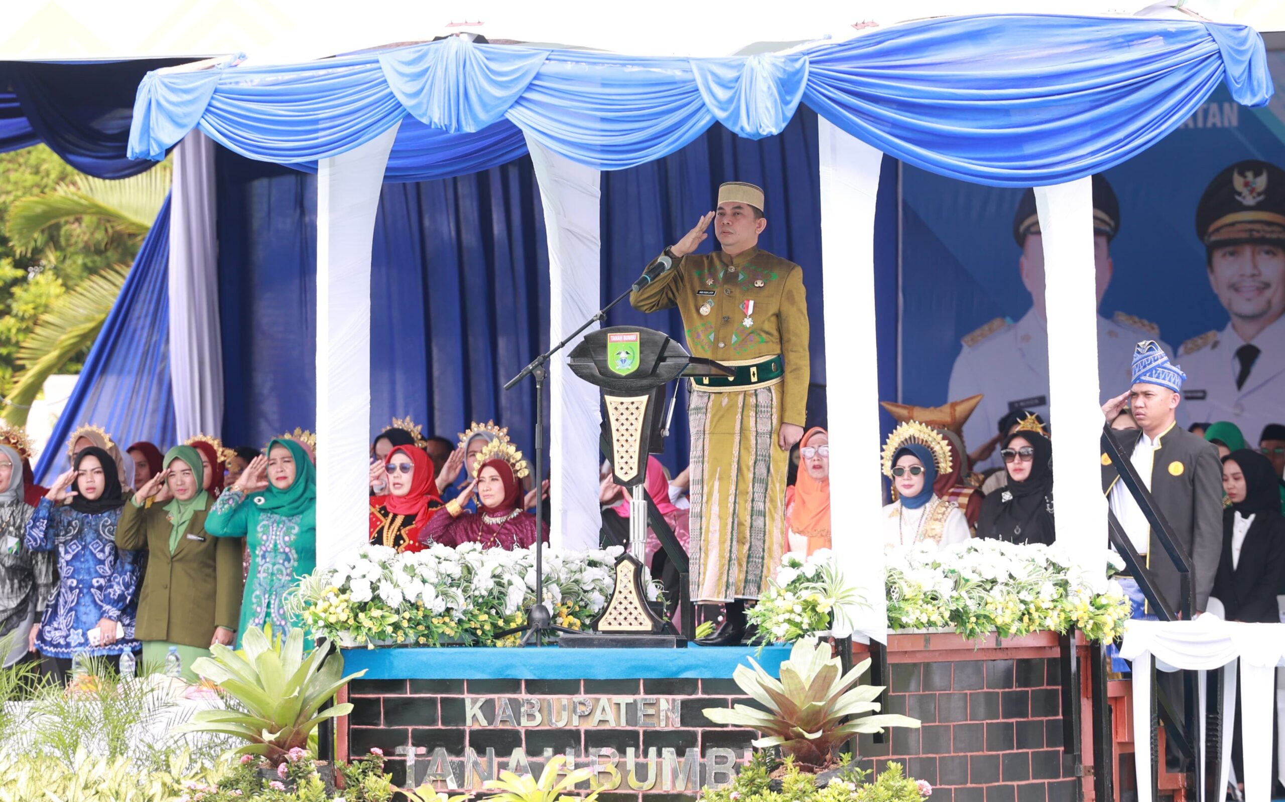 Bupati Tanah Bumbu, Andi Rudi Latif, yang akrab disapa Bang Arul, bertindak sebagai inspektur upacara pada acara yang menandai babak baru dalam sejarah perayaan Hari Jadi Kabupaten Tanah Bumbu. Dalam sambutannya, Bang Arul menyampaikan bahwa upacara bendera ini merupakan simbol rasa syukur kepada Tuhan Yang Maha Esa sekaligus penghormatan terhadap para pendiri dan pejuang bangsa. Peringatan ini didasarkan pada Peraturan Bupati Nomor 27 Tahun 2025, yang dikeluarkan pada 27 Maret 2025, dan diputuskan untuk menjadi tradisi tahunan dalam memperingati Hari Jadi Tanah Bumbu.