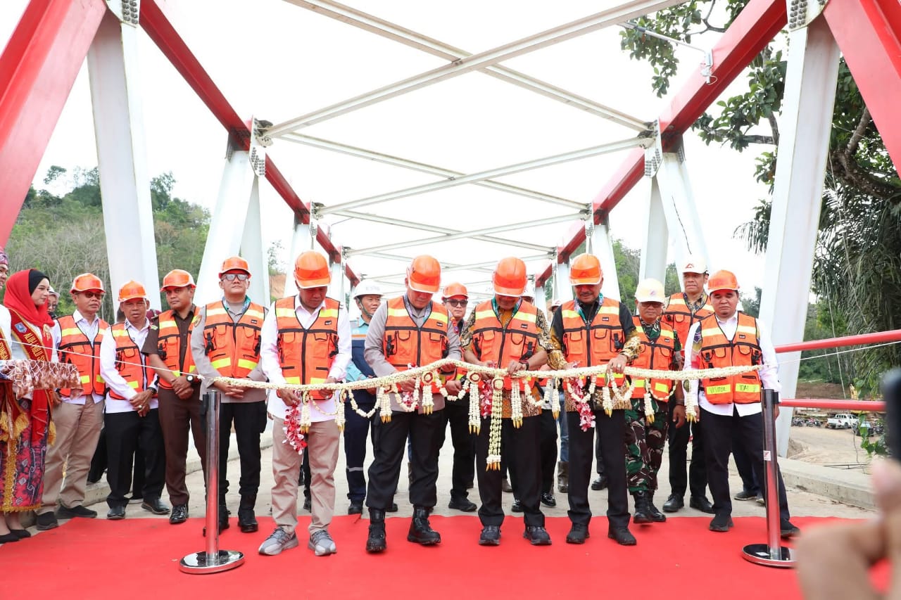 Nusawarta.id, Kandangan – Bupati Hulu Sungai Selatan (HSS) Syafrudin Noor bersama Komisaris PT Baramulti Suksessarana (BSSR) Tbk Jenderal (Purn) Badrodin Haiti meresmikan Jembatan Overpass Merah Putih di Desa Batu Bini, Kecamatan Padang Batung, Rabu (16/7/2025). Peresmian ditandai dengan penandatanganan prasasti dan pemotongan pita melati sebagai simbol peresmian infrastruktur strategis tersebut.