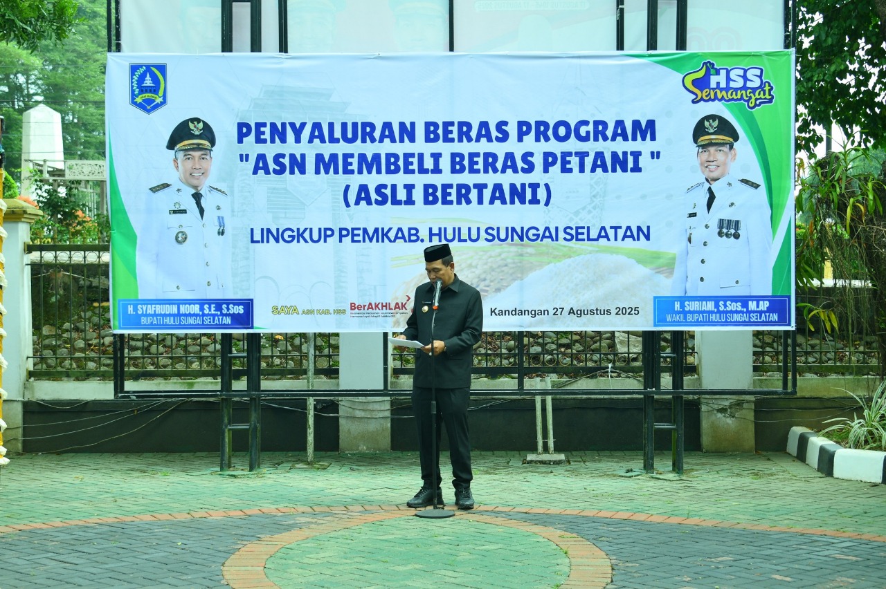 Nusawarta.id, Kandangan — Pemerintah Kabupaten Hulu Sungai Selatan (HSS) meluncurkan program ASLI BERTANI (ASN Membeli Beras Petani) sebagai upaya mendukung kesejahteraan petani lokal sekaligus memperkuat ketahanan pangan daerah. Peresmian berlangsung di halaman Kantor Sekretariat Daerah Kabupaten HSS pada (27/08/2025) dipimpin langsung oleh Bupati HSS, H. Syafrudin Noor, S.E., S.Sos.