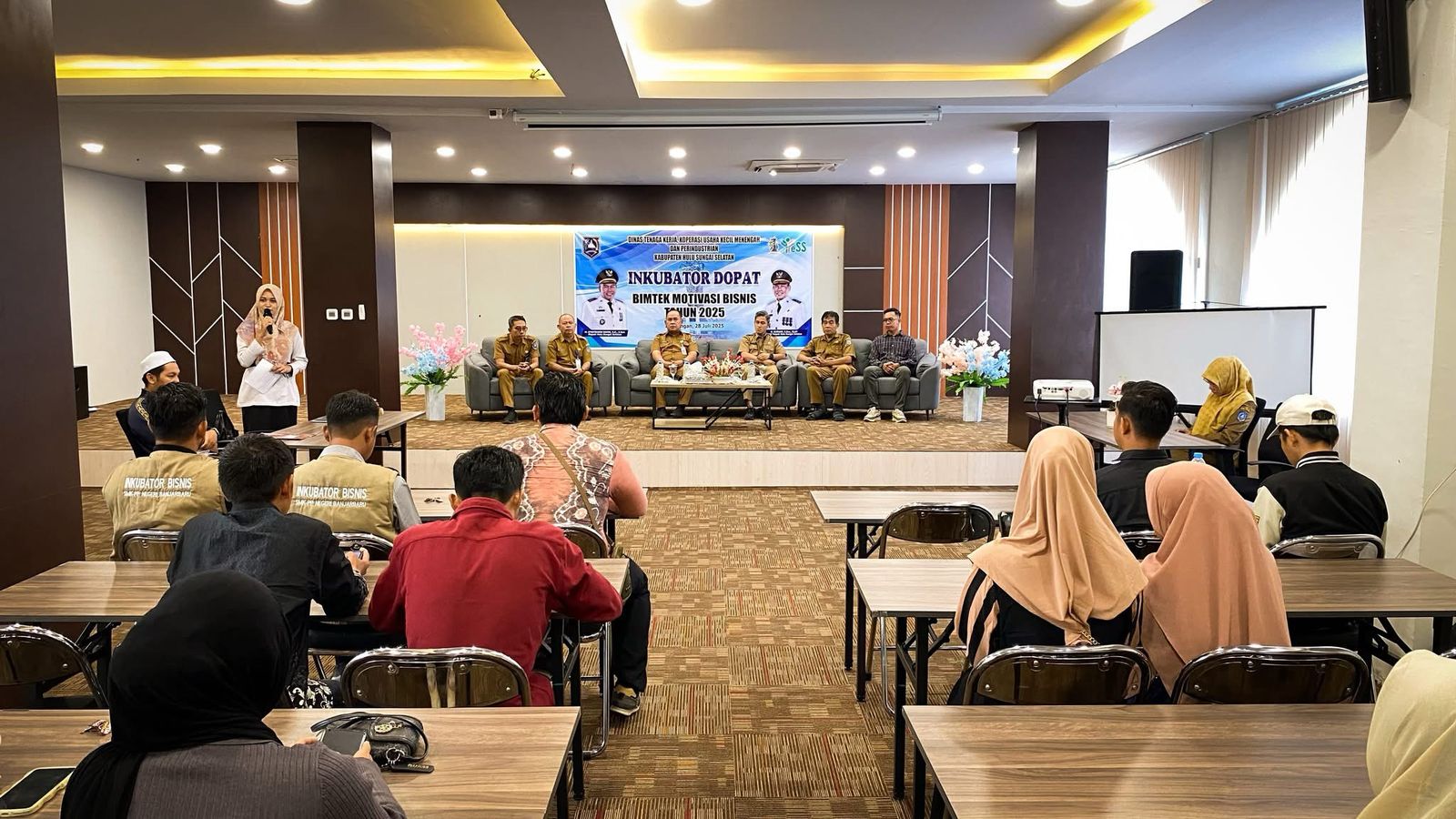 Staf Ahli Bidang Pemerintahan, Pembangunan, dan Kemasyarakatan Kabupaten HSS, Drs. H. Iwan Friady, M.AP, mewakili Bupati HSS membuka secara resmi Bimbingan Teknis Motivasi Bisnis Inkubator Dopat Tahun 2025 di Ballroom Mall Pelayanan Publik, Senin (28/7/2025). (Foto: Diskominfo Hss/Nusawarta.id)