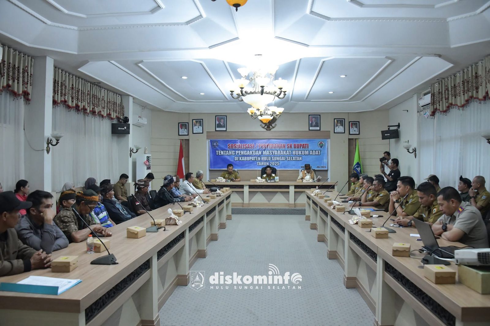 Nusawarta.id, Kandangan Pemerintah Kabupaten Hulu Sungai Selatan (HSS) kembali menegaskan komitmennya dalam melindungi dan melestarikan budaya serta adat istiadat lokal dengan menyerahkan Surat Keputusan (SK) Bupati tentang Pengakuan Masyarakat Hukum Adat (MHA) kepada empat komunitas adat. Penyerahan SK ini dilaksanakan pada Senin (07/07/2025) di Aula Ramu Setda Kabupaten HSS.