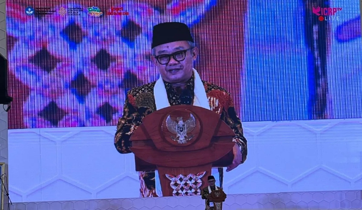 Menteri Pendidikan Dasar dan Menengah sekaligus Ketua Indonesia Conference on Religion and Peace (ICRP) Abdul Mu’ti membuka Festival Toleransi dan Budaya di Jakarta, Minggu (16/11/2025). (Foto: Nusawarta.id)