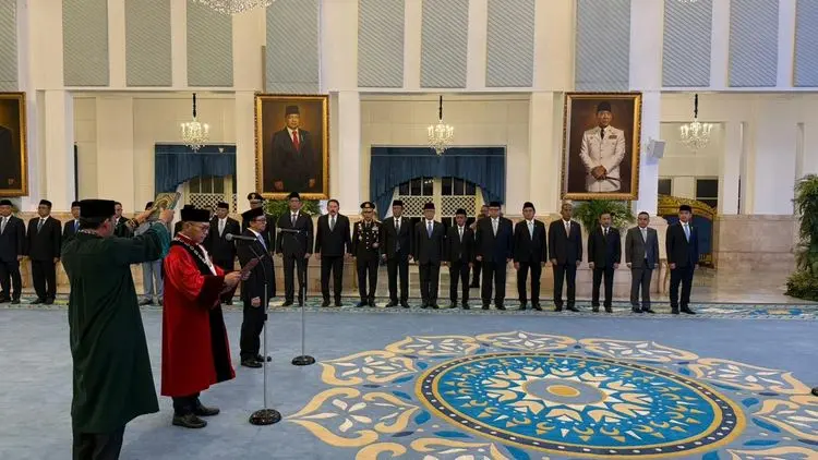 Presiden Prabowo resmi melantik Adies Kadir sebagai Hakim MK dan Juda Agung sebagai Wamenkeu di Istana Negara, Jakarta, Kamis (5/2/2026). (Foto: Nusawarta.id)