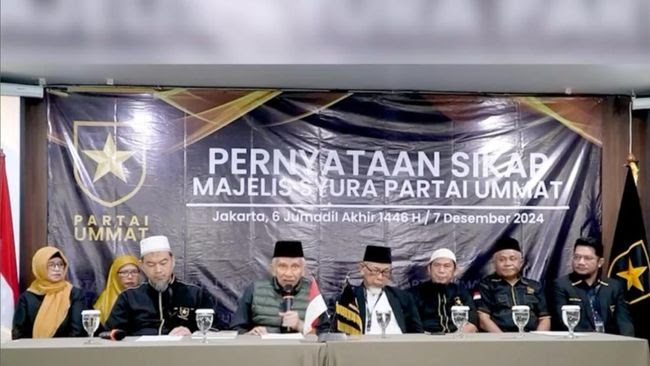 Berikut ini pernyataan sikap Partai Ummat, yang dibacakan M Amien Rais, dikutip dari akun YouTube Amien Rais Official, Minggu (8/12/2024).