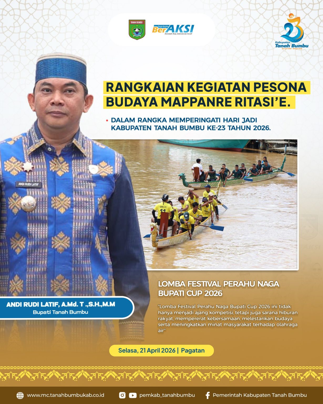 Bupati Tanah Bumbu, Andi Rudi Latif, dalam kesempatan tersebut menegaskan bahwa penyelenggaraan Festival Perahu Naga Bupati Cup 2026 memiliki tujuan strategis, tidak hanya untuk meningkatkan minat masyarakat terhadap olahraga air, tetapi juga untuk melestarikan budaya lokal yang telah menjadi identitas daerah.