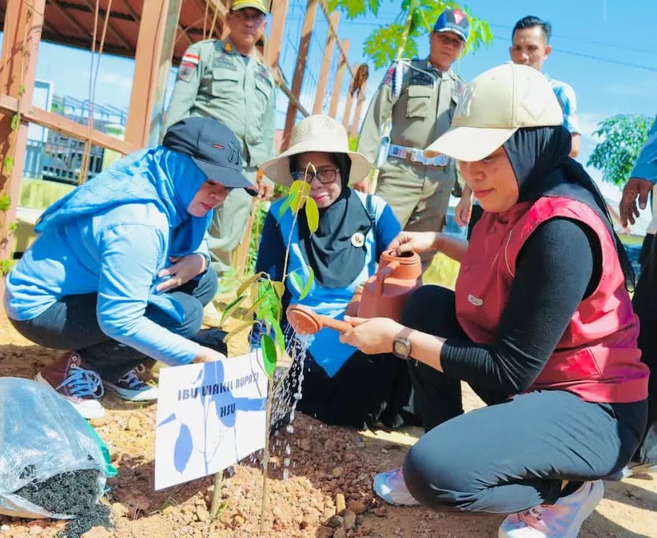 Nusawarta.id, Amuntai – Dalam rangka memperingati Hari Pohon Sedunia dan Hari Menanam Pohon Indonesia, Ketua Gabungan Organisasi Wanita (GOW) Kabupaten Hulu Sungai Utara (HSU), Mayang Melani Hero Setiawan, memimpin kegiatan penanaman pohon di dua lokasi berbeda, yakni halaman SMAN 1 Danau Panggang dan Desa Pararain, Kecamatan Danau Panggang, pada Jumat (7/11/2025).
