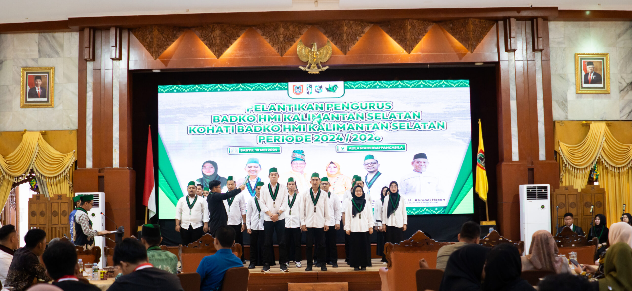 Nusawarta.id – Banjarmasin. Aula Mahligai Pancasila Banjarmasin menjadi saksi pelantikan pengurus Badan Koordinasi Himpunan Mahasiswa Islam (BADKO HMI) dan Korps Himpunan Mahasiswa Islam Wati (KOHATI) Kalimantan Selatan untuk periode 2024-2026, yang dilaksanakan pada Sabtu (18/05/2024).