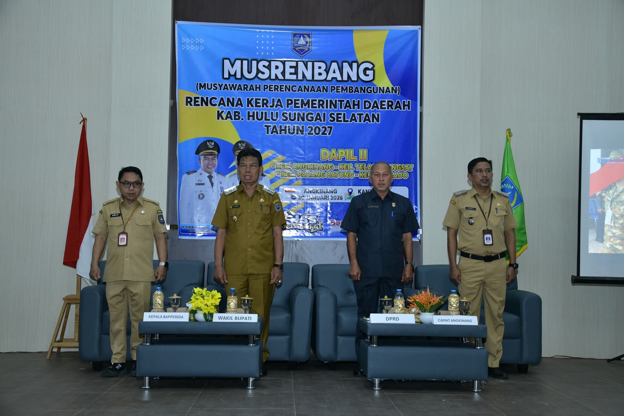 Kegiatan strategis ini dihadiri Wakil Bupati HSS H. Suriani, S.Sos., M.AP, anggota DPRD Kabupaten HSS dari Dapil II, jajaran kepala perangkat daerah, Camat Angkinang, Padang Batung, Telaga Langsat, dan Loksado, para kepala desa, serta unsur Forum Koordinasi Pimpinan Kecamatan (Forkopimcam).