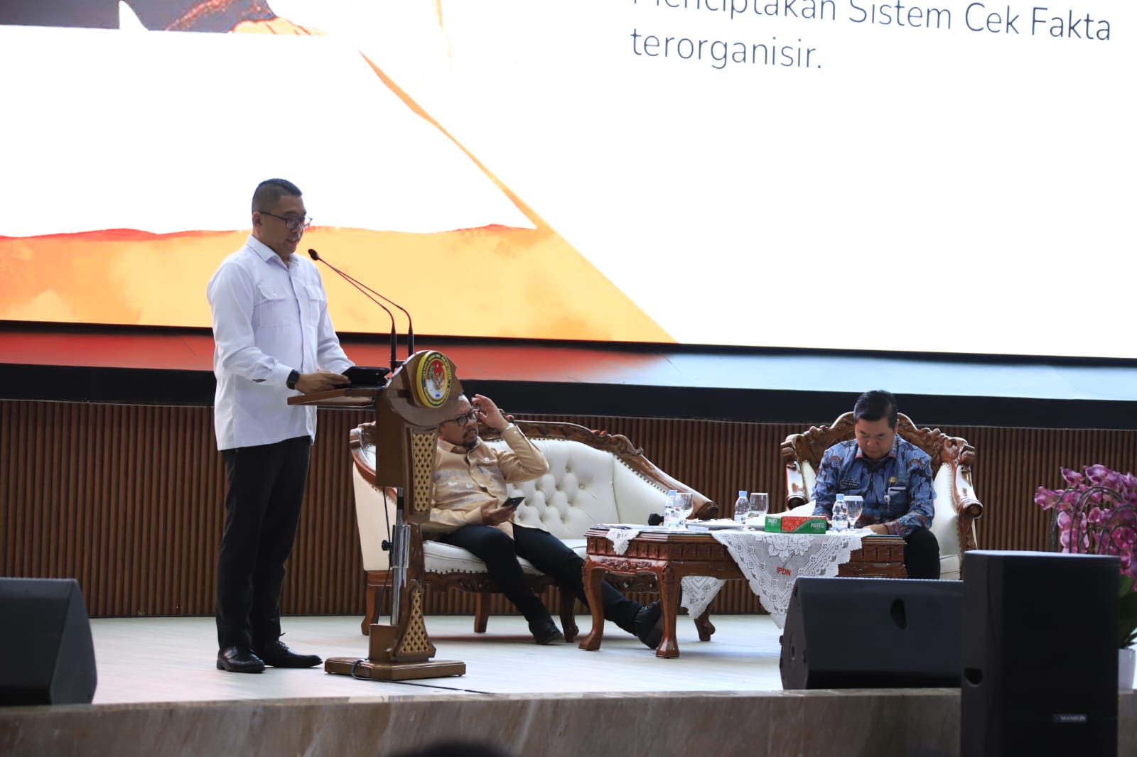 Selain itu, forum retret juga menghadirkan Deputi Bidang Koordinasi Informasi dan Evaluasi Kantor Komunikasi Kepresidenan (PCO), Fritz Edward Siregar, yang membekali kepala daerah dengan keterampilan komunikasi kebijakan yang efektif dan efisien. Fritz menekankan pentingnya kemampuan kepala daerah dalam menyampaikan kebijakan secara jelas kepada publik serta melakukan monitoring pemberitaan untuk menangani kritik dan disinformasi secara tepat.