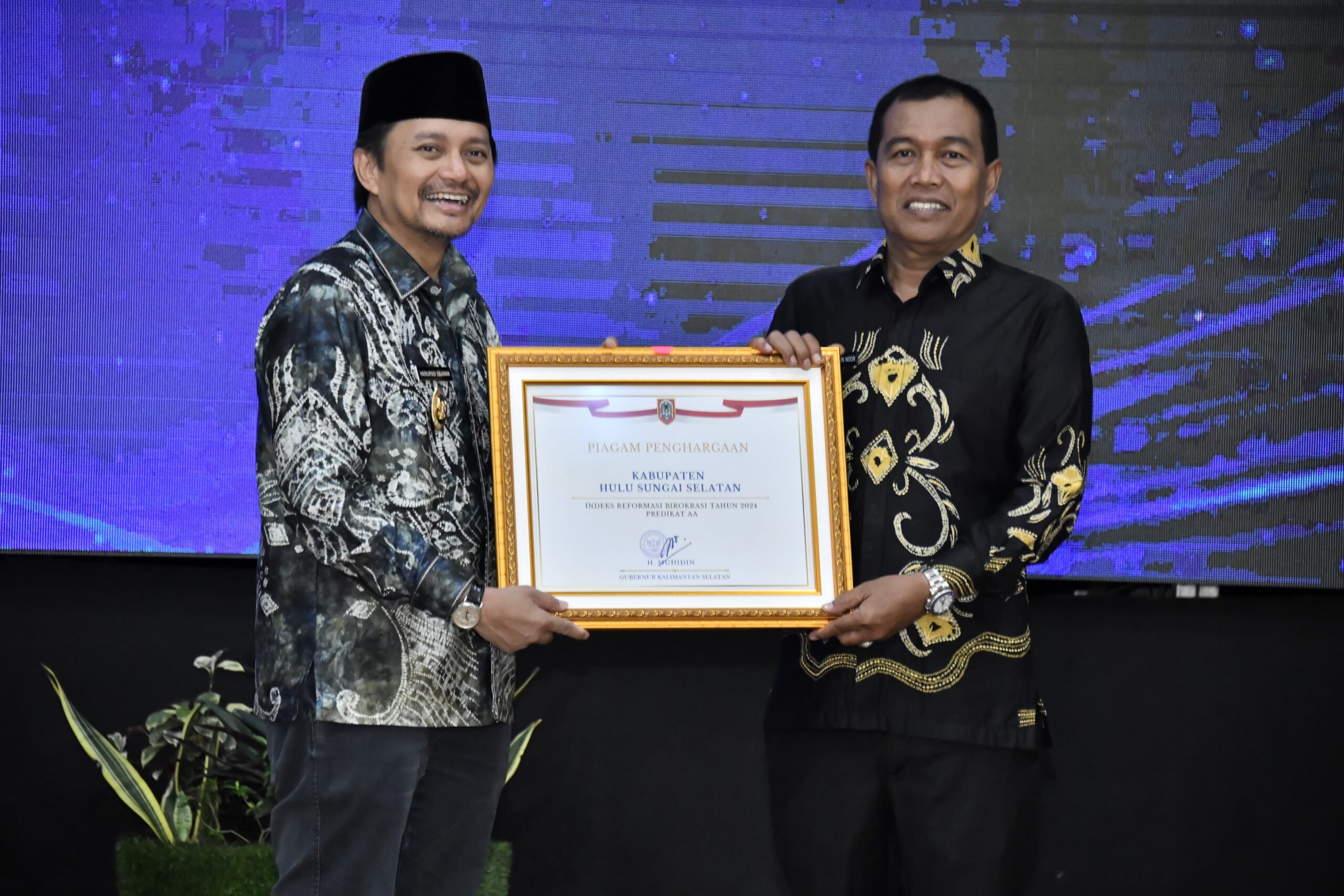 Penghargaan yang diraih antara lain Predikat “AA” untuk Indeks Reformasi Birokrasi Tahun 2024 dengan nilai 91,25, Predikat “A” untuk Implementasi Sistem Akuntabilitas Kinerja Instansi Pemerintahan (SAKIP) dengan nilai 84,7, Penghargaan Mal Pelayanan Publik (MPP) Kategori Prima, serta Indeks BerAKHLAK Tertinggi III (Kategori Sehat). Deretan penghargaan tersebut diserahkan langsung oleh Wakil Menteri PAN-RB Komjen (Purn) Purwadi Arianto bersama Wakil Gubernur Kalimantan Selatan Hasnuryadi Sulaiman kepada Bupati HSS, Syafrudin Noor.