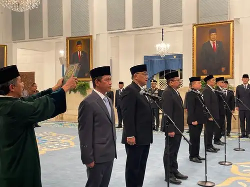 Dalam kesempatan tersebut, Presiden Prabowo memimpin langsung pembacaan sumpah jabatan yang diikuti para pejabat yang dilantik. Dalam sumpahnya, mereka berkomitmen untuk setia kepada Undang-Undang Dasar Negara Republik Indonesia Tahun 1945 serta menjalankan seluruh peraturan perundang-undangan dengan penuh tanggung jawab.