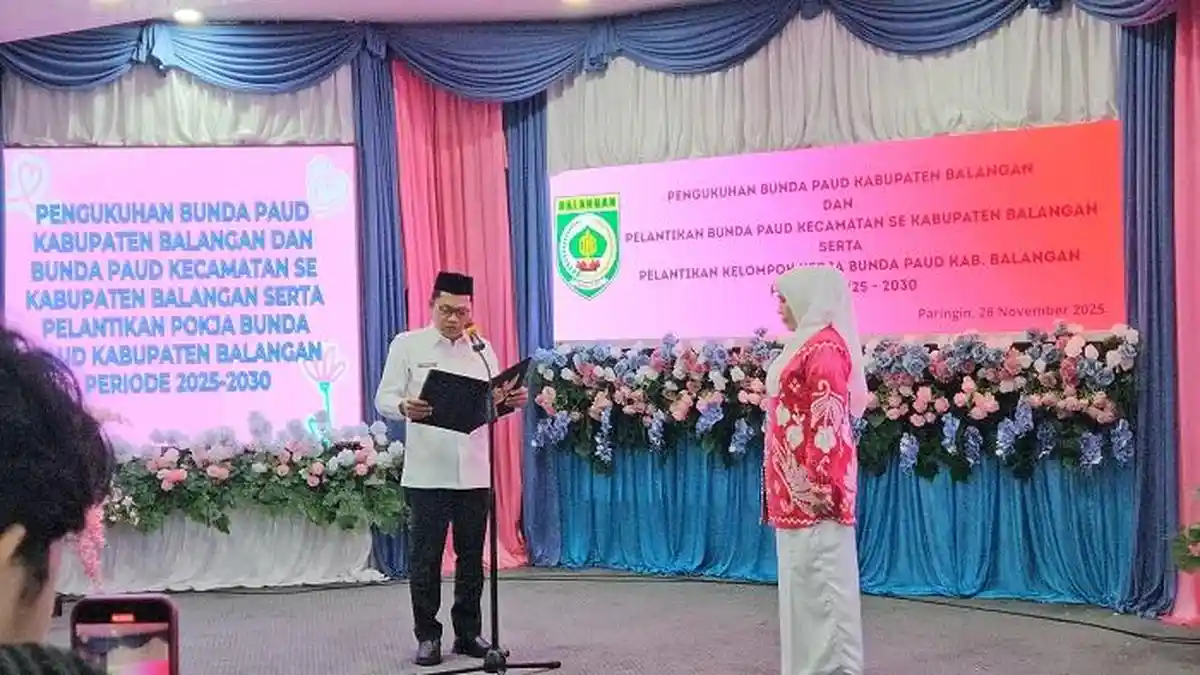 Nusawarta.id, Balangan – Ketua TP PKK Kabupaten Balangan, Sri Huriyati Hadi, resmi dikukuhkan sebagai Bunda Pendidikan Anak Usia Dini (PAUD) Kabupaten Balangan oleh Bupati Balangan, Abdul Hadi. Acara pengukuhan berlangsung di Aula Benteng Tundakan, Kecamatan Paringin Selatan, Rabu (26/11/2025), dan dihadiri oleh sejumlah pejabat daerah serta tokoh masyarakat.