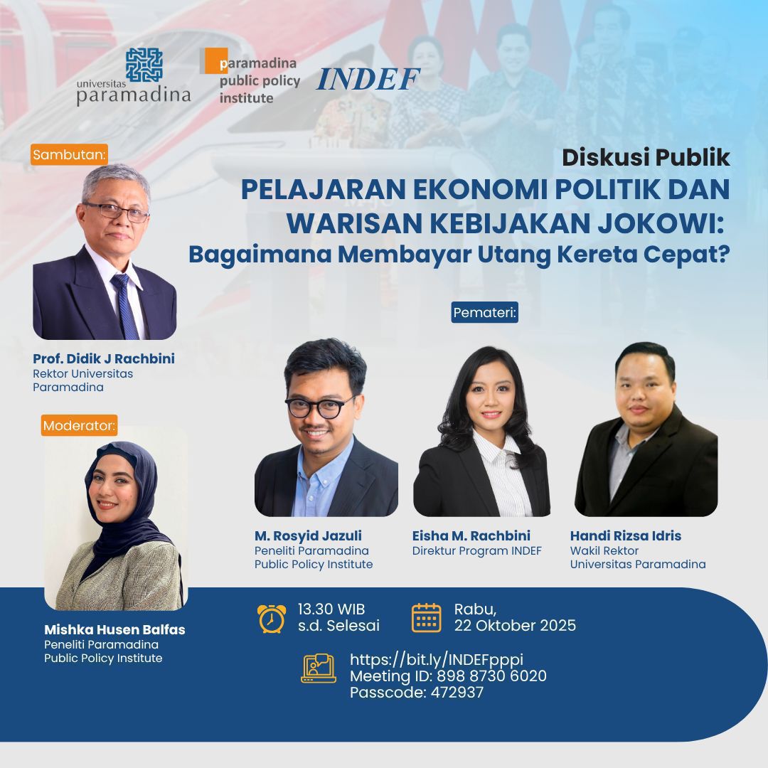 Diskusi PPPI Paramadina dan INDEF: Warisan Ekonomi Politik Era Jokowi dan Beban Utang Kereta Cepat
