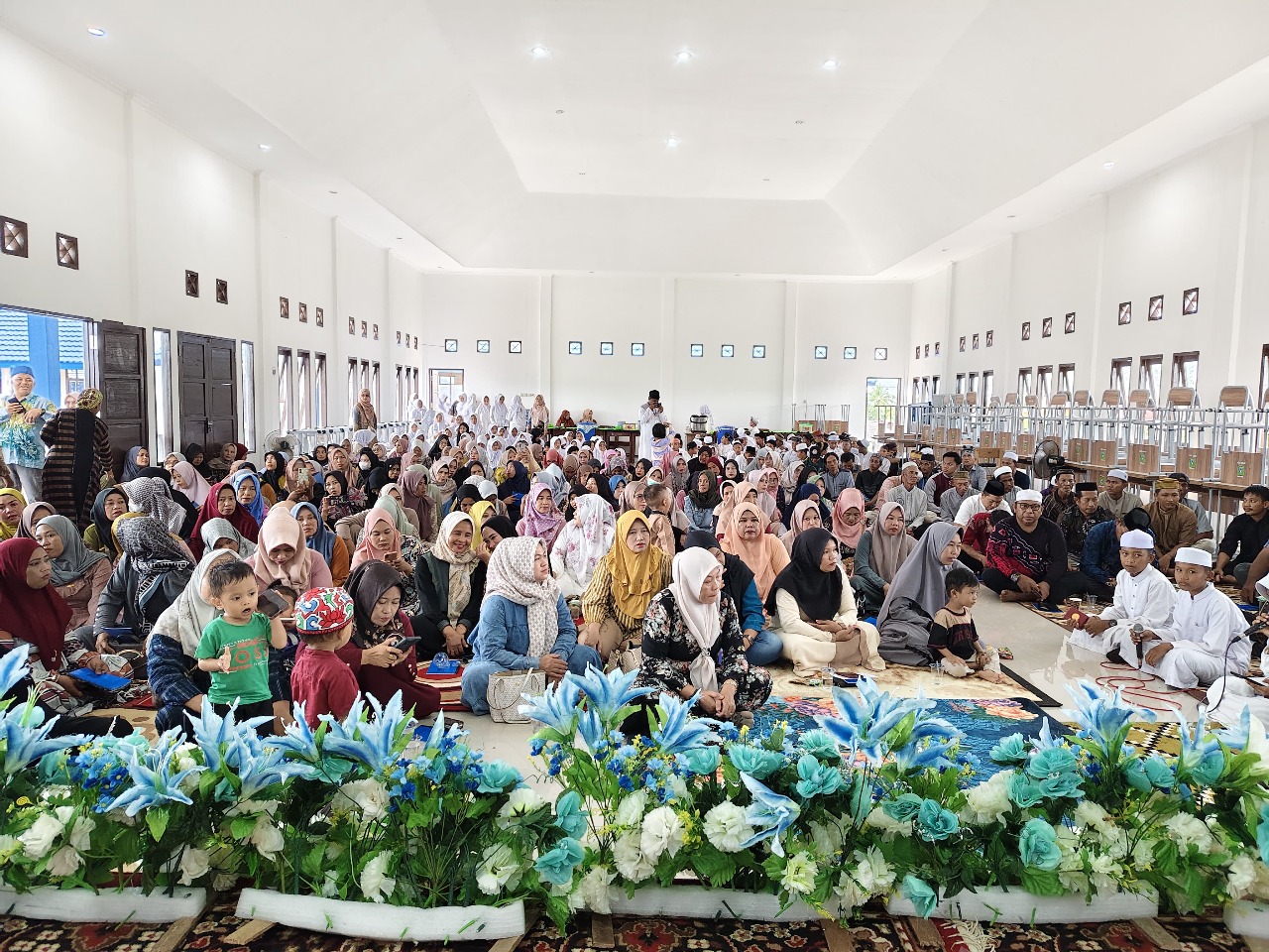Rangkaian acara dimeriahkan dengan pembacaan ayat suci Al-Qur’an, lantunan shalawat, dan doa bersama, menciptakan suasana yang penuh syukur dan kebersamaan.